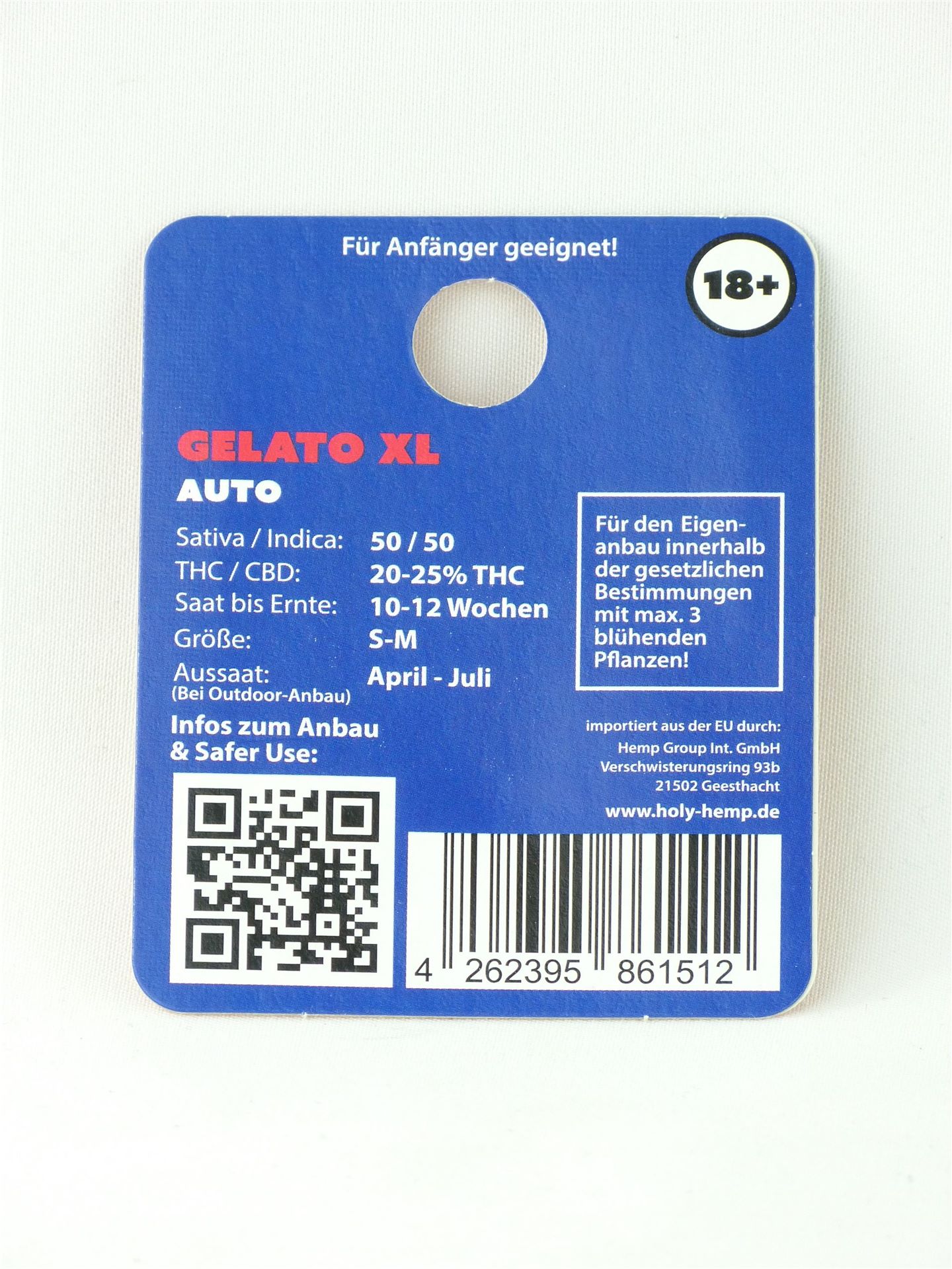 Auto Flowering, 50% Sativa / 50% Indica, 20-25% THC, Saat bis Ernte: 10-12 Wochen, Größe: S-M, Aussaat (Bei Outdoor-Anbau): April-Juli, Abstammung: (Runtz XL Auto x Sweet Gelato Auto) F2. Auf der Rückseite jeder Holy Hemp Verpackung findest du einen QR-Code, um dich über den Anbau zu informieren. Keine Abgabe an Personen unter 18 Jahren. Feststellung der Volljährigkeit durch unser Personal, bei Zustellung durch unseren eigenen Lieferdienst oder via DHL.