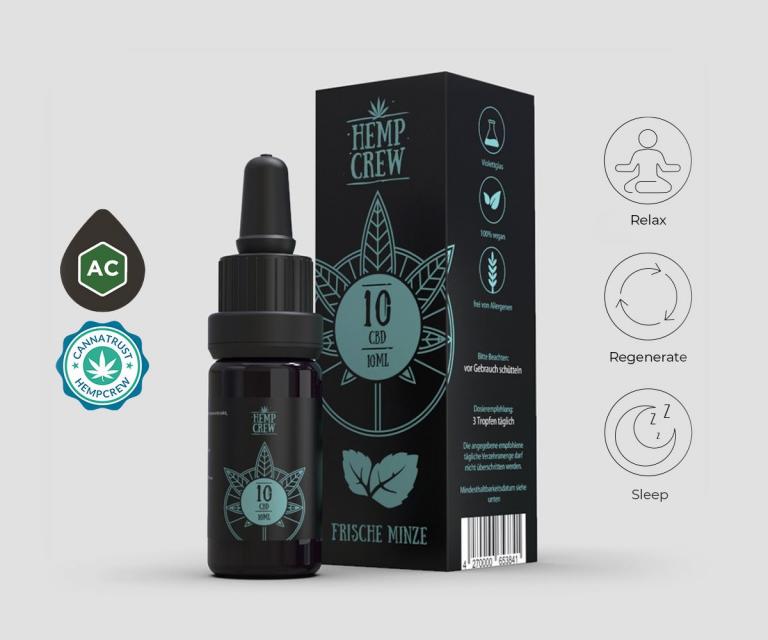 Dieses Öl hat einen CBD-Gehalt von 10% und hat einen angenehm milden Geschmack nach frischer Minze.
