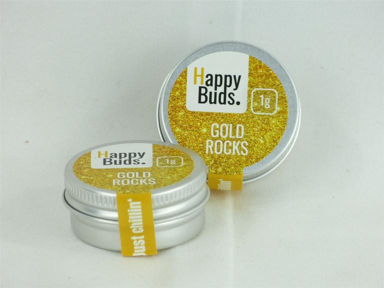 Das Terpenprofil von Gold Rocks ist kräftig, harzig, aromatisch. Abgerundet werden die Gold Rocks mit einem besonders hohen CBD Gehalt von 80% CBD. THC nicht nachweisbar (Bemessungsgrundlage 0,05%). Die Gold Rocks stammen aus Schweizer Indoor-Anbau und werden in Öl getunkt und mit Pollinat und Kief überzogen. Aus EU-zertifiziertem Nutzhanf, Abgabe erst ab 18 Jahren (festgestellt durch DHL, unseren eigenen Lieferdienst oder unser Verkaufspersonal), Verfügbar in 1g.