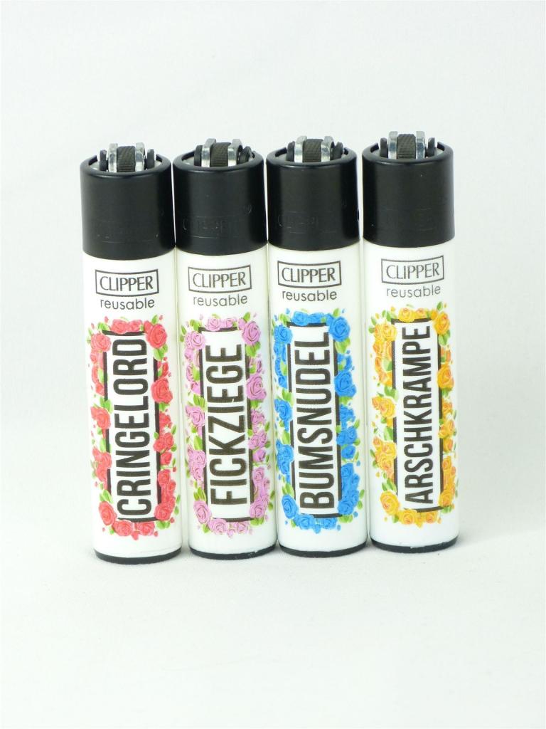 Cooles Design, nice Technik und ein Must-have für Sammler. Der Clipper® besteht aus einen bruch- und feuerfesten Nylonkörber. Die Flamme vergrößert sich wenn man den Clipper nach unten neigt. Den Zündstift kann man herausnehmen um die Selbstgedrehten nachzustopfen. Clipper sind nachfüllbar, die Zündsteine sind auswechselbar so sind Sie in Sachen umwelt die richtige Entscheidung. Zertifiziert anch ISO 9994. Kindersicherung nach EN 13869. Bis zu 3000 Zündungen. Wähle den Clipper aus den du aus der Serie kaufen möchtest oder die ganze Serie.
