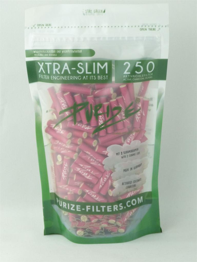 Die Slim Size Aktivkohlefilter werden geliefert im wiederverschließbarem und praktischen 250er Vorratsbeutel. Der Standbodenbeutel sorgt nicht nur dafür, dass Deine Filter nice präsentiert werden, sondern schafft auch gute Lagerungsbedingungen für Deine Filter, so werden sie von äußeren Einflüssen geschützt und hast lange etwas von Deiner Vorteilspackung! Milderes Raucherlebnis durch hochwertige Aktivkohle. Ø6mm x 26,9mm