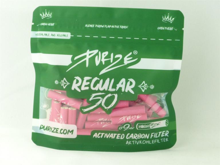 50 PURIZE® Regular Size Ø 9mm, für besten Durchzug. Die hochwertige Aktivkohle reduziert die Schadstoffaufnahme und verschafft Dir ein kühles und trockenes Raucherlebnis. Füllung: Aktivkohle auf Kokusnussschalen-Basis