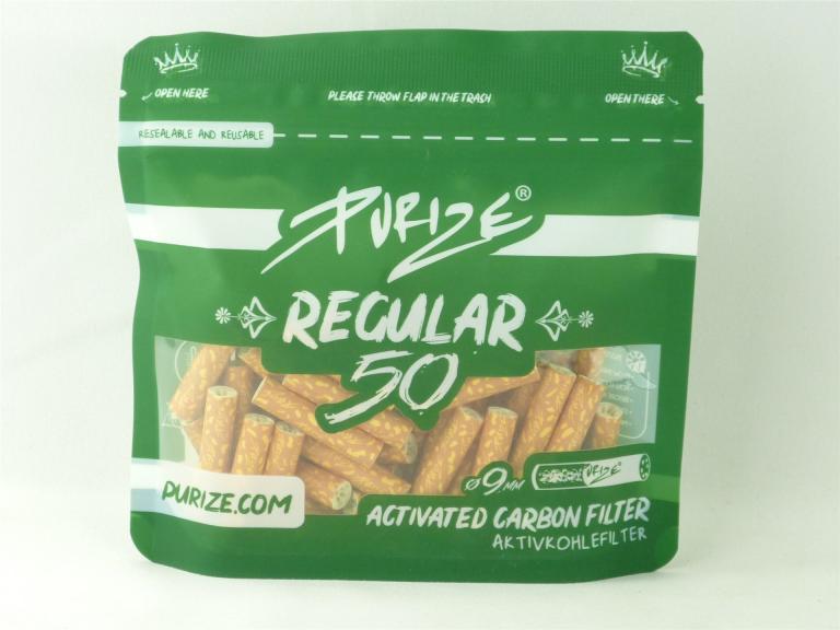 50 PURIZE® Regular Size Ø 9mm, für besten Durchzug. Die hochwertige Aktivkohle reduziert die Schadstoffaufnahme und verschafft Dir ein kühles und trockenes Raucherlebnis. Füllung: Aktivkohle auf Kokusnussschalen-Basis