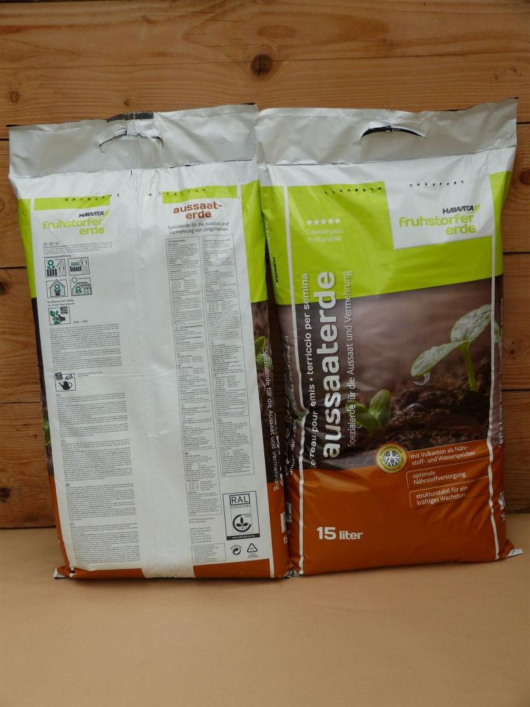 Die Hawita-Fruhstorfer Aussaaterde ist ein gebrauchsfertiges Kultursubstrat für die Aussaat, zum Pikieren und zur Stecklingsvermehrung sowie zum Einpflanzen von Jungpflanzen, Kräuter- und Gewürzpflanzen. Die Struktur, organische Aufdüngung und der pH-Wert sind speziell abgestimmt und sichern eine schnelle Keimung, gute Pflanzenentwicklung und gesunde Kräuter. Lieferung derzeit nur über unseren eigenen Lieferdienst möglich oder natürlich Abholung.
