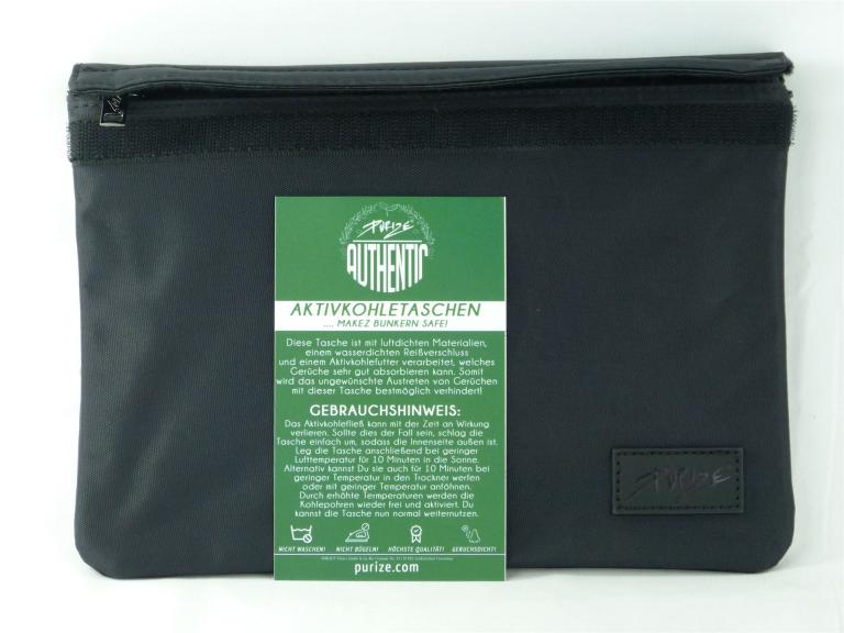 Die neue PURIZE®-Aktivkohletasche ist mit luftdichten Materialien, einem wasserdichten Reißverschluss und einem Aktivkohlefutter verarbeitet, sodass Gerüche sehr gut absorbiert werden – mies für den Mief eben. Die Tasche bietet genügend Platz, um darin geliebte Gegenstände und Utensilien möglichst geruchsfrei und anonym von A nach B zu transportieren. Abmessungen: 28,5cm x 20cm